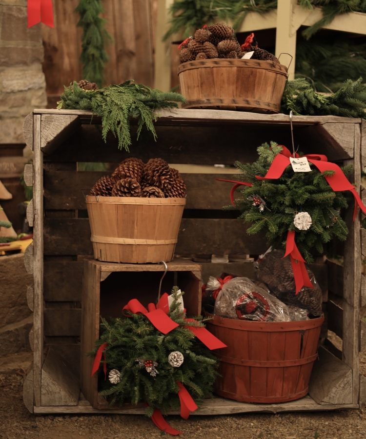 The Wreath Barn is filled to the roof with fresh wreaths (decorated and undecorated), bows, handmade garland, pinecones, tree stands and more.