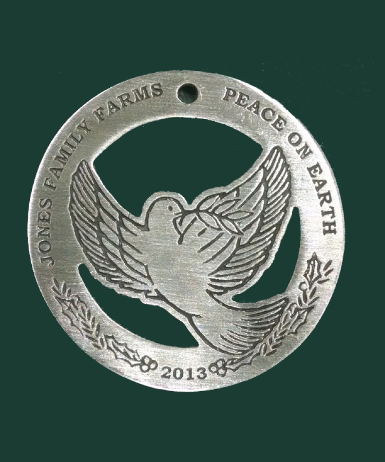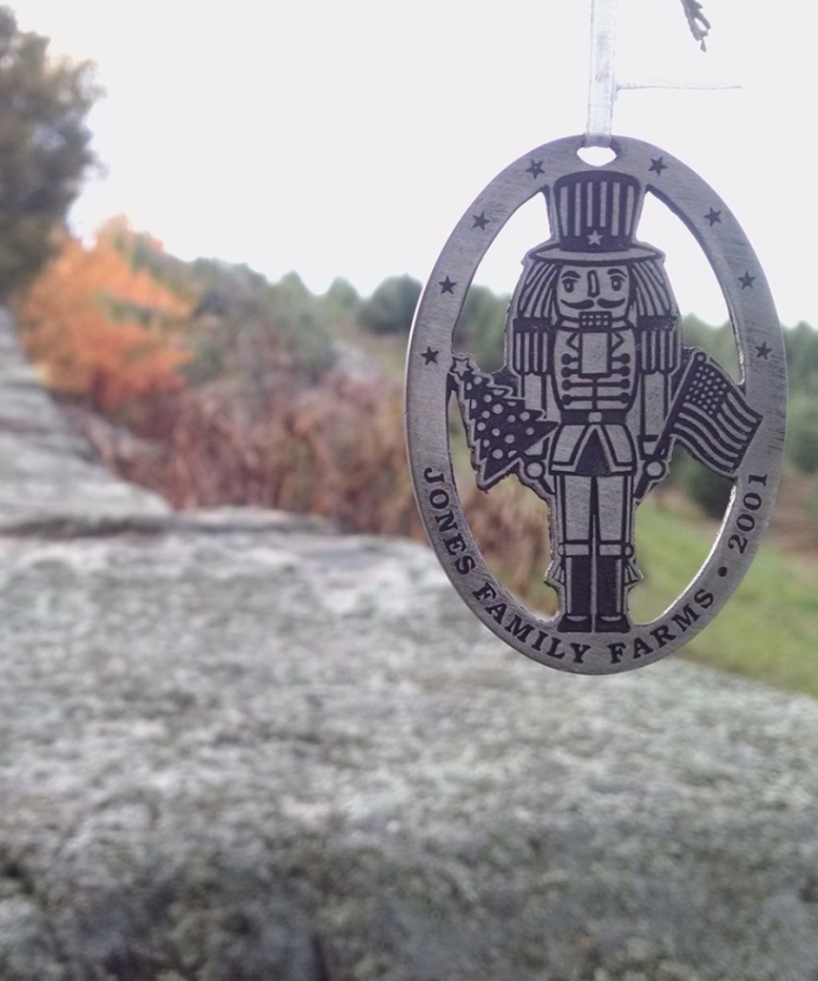This was our first custom-designed ornament, featuring the original farm logo designed by Philip Jones, the 4th generation Jones farm who started selling his first trees in 1947.